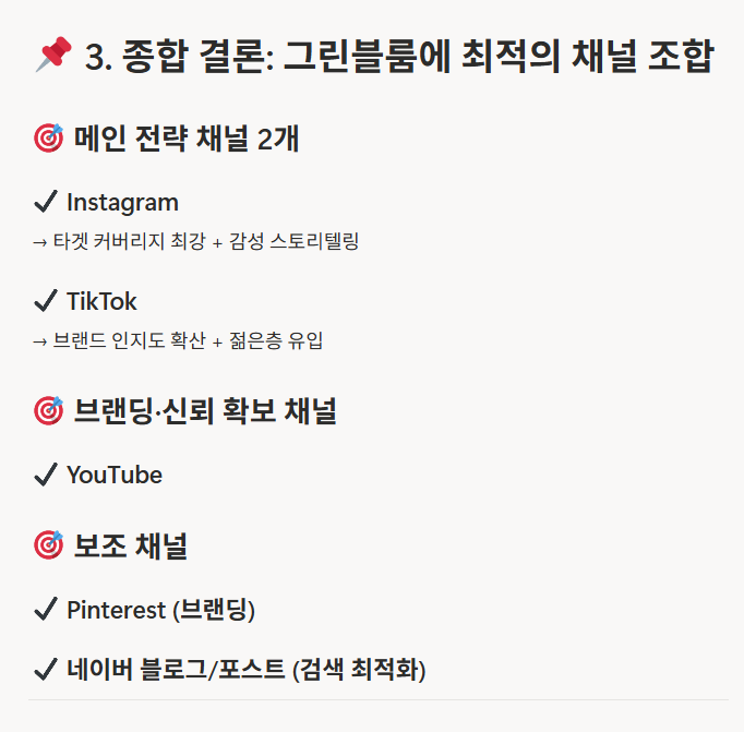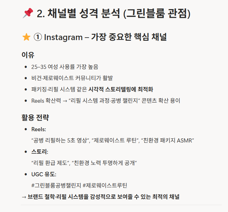 | 12주차 | 전체 3개월 캠페인 성과 공유 | 카드뉴스 | “여러분 덕분에 우리는 더 건강해졌습니다” | #그린블룸캠페인 #지속가능한브랜드 |